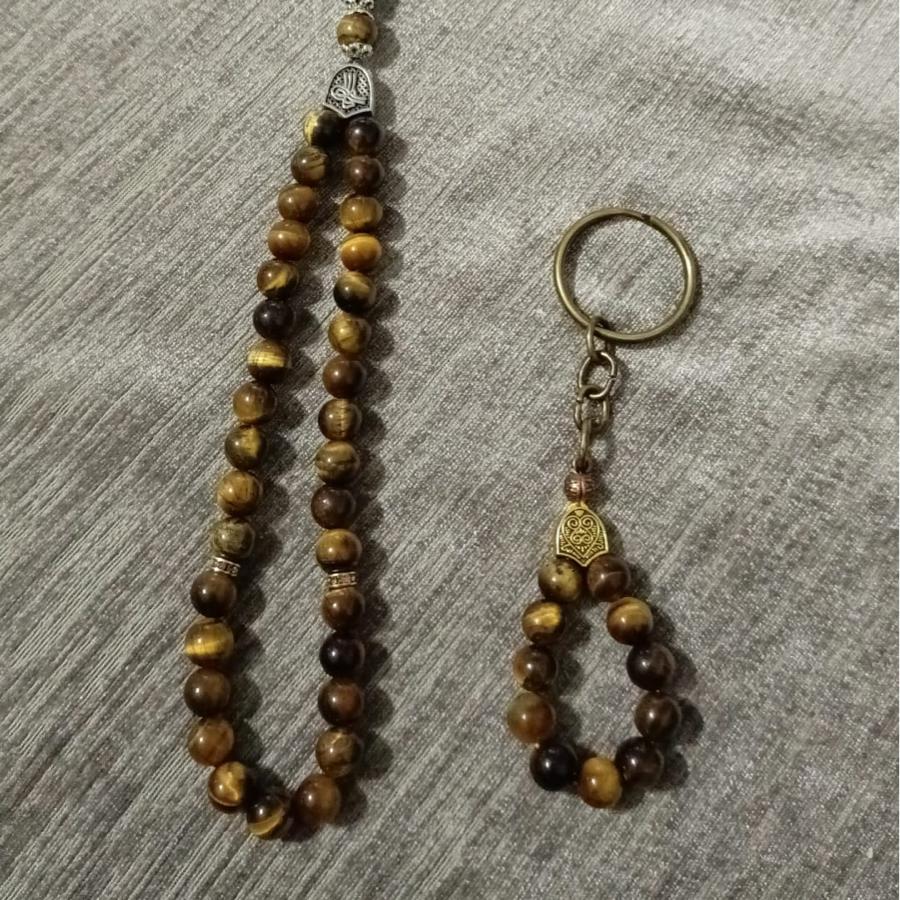 Özel taşlardan üretilmiş tesbih ve anahtarlık takımı